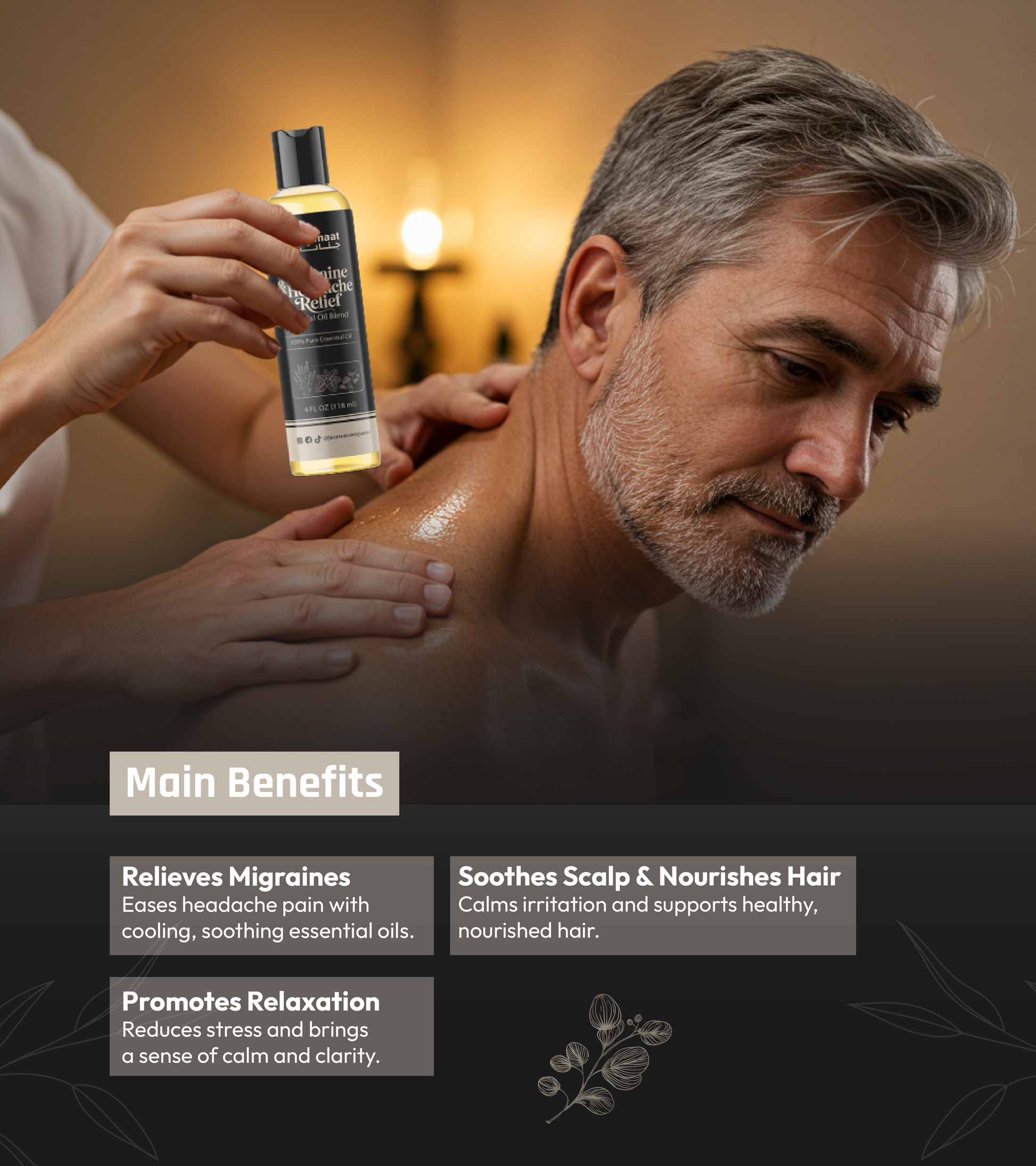 Jannaat Migraine & Headache Relief Oil is a natural blend of essential oils designed to provide relief from migraine headaches and promote relaxation. Jannaat Oil helps to soothe and calm the mind and body.
